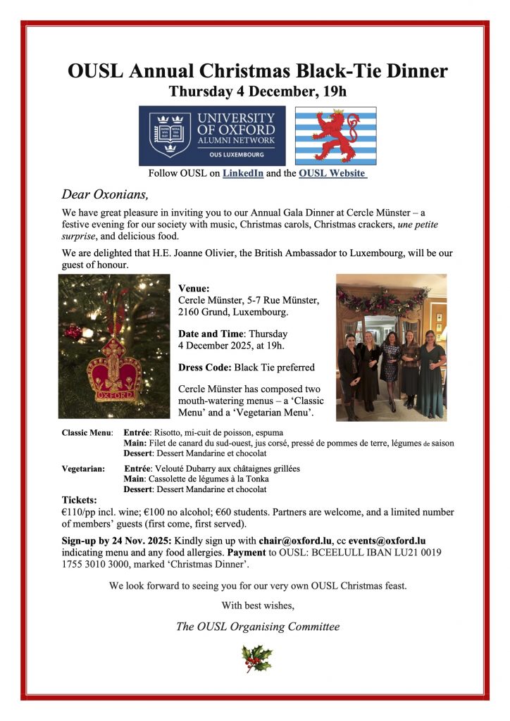 Sign-up is already in full swing, so do register with chair@oxford.lu, cc events@oxford.lu now to secure a place.