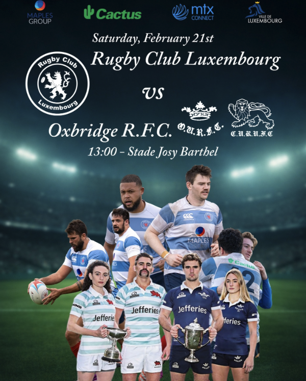The Rugby Club of Luxembourg has invited the Oxbridge Alumni Rugby Team to Luxembourg, and they are arranging a match on Saturday 21 February at Stade Josy Barthel at 14h. Do come and support Oxbridge!